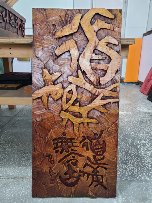그의 작품 하나하나는 수개월에서 수년에 이르는 산고의 과정을 거친다. 서각의 모든 작품은 서예와 공예가 합쳐야만 하기에 서각재의 품질과 섬세한 수작업이 필요하다. AI가 인간의 그림을 초월하는 시대이지만 현대서각은 끌질 자국과 소재의 우연성이 겹쳐 세상 단 하나뿐인 창조적 작품이 탄생하게 된다. 그러므로 전통서각이든 현대서각이든 그 가치는 환금할 수 없는 무형의 힘과 땀이 작용한다.